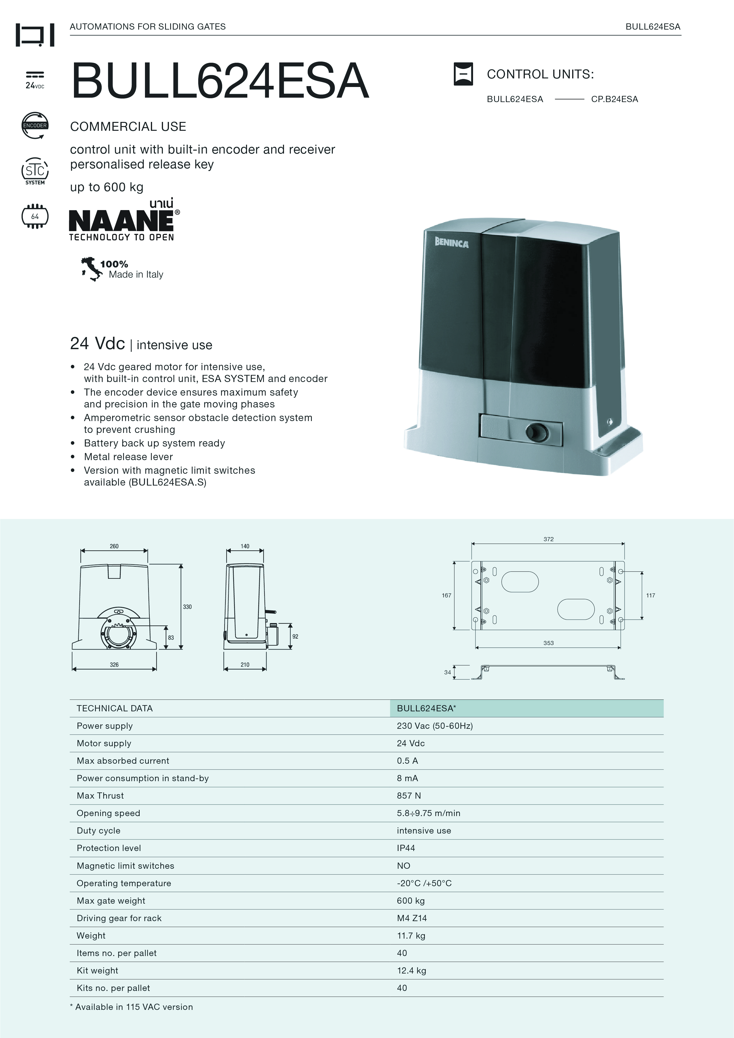 Suitable for gates up to 600 kg with max. operating speed at 25.5 m/min